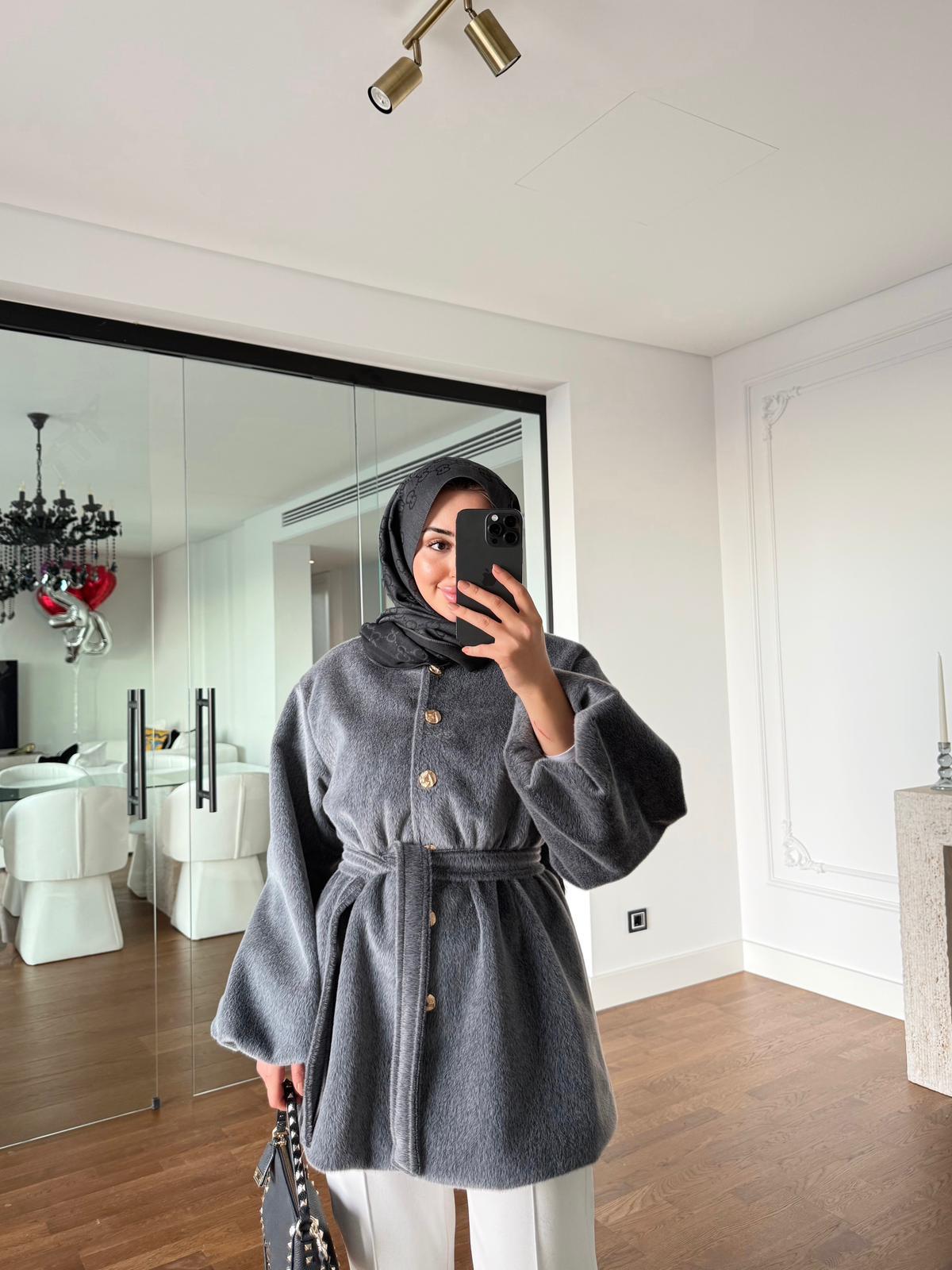 Gold Düğmeli Kaban Antrasit