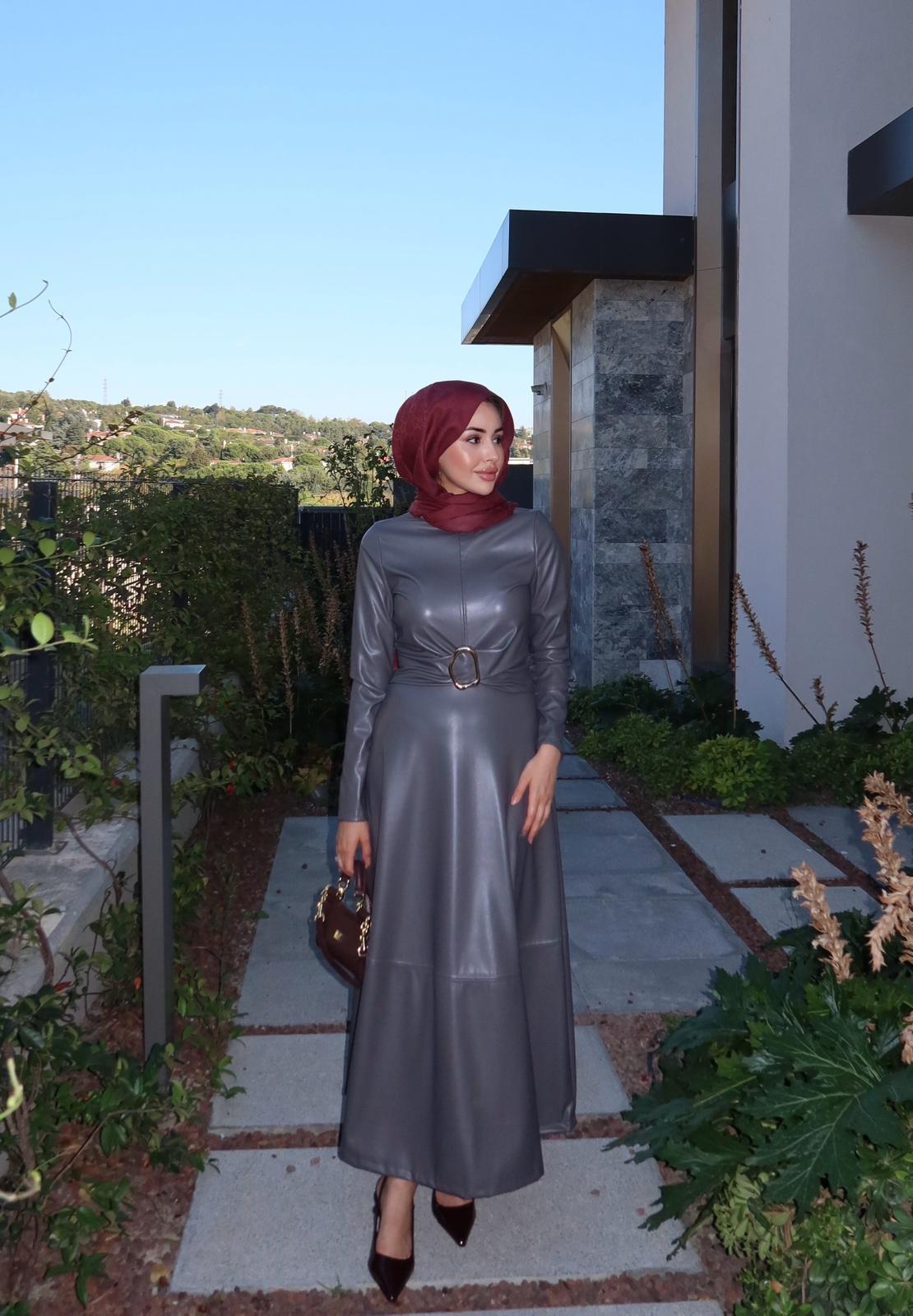 Gold Tokalı Deri Elbise Antrasit