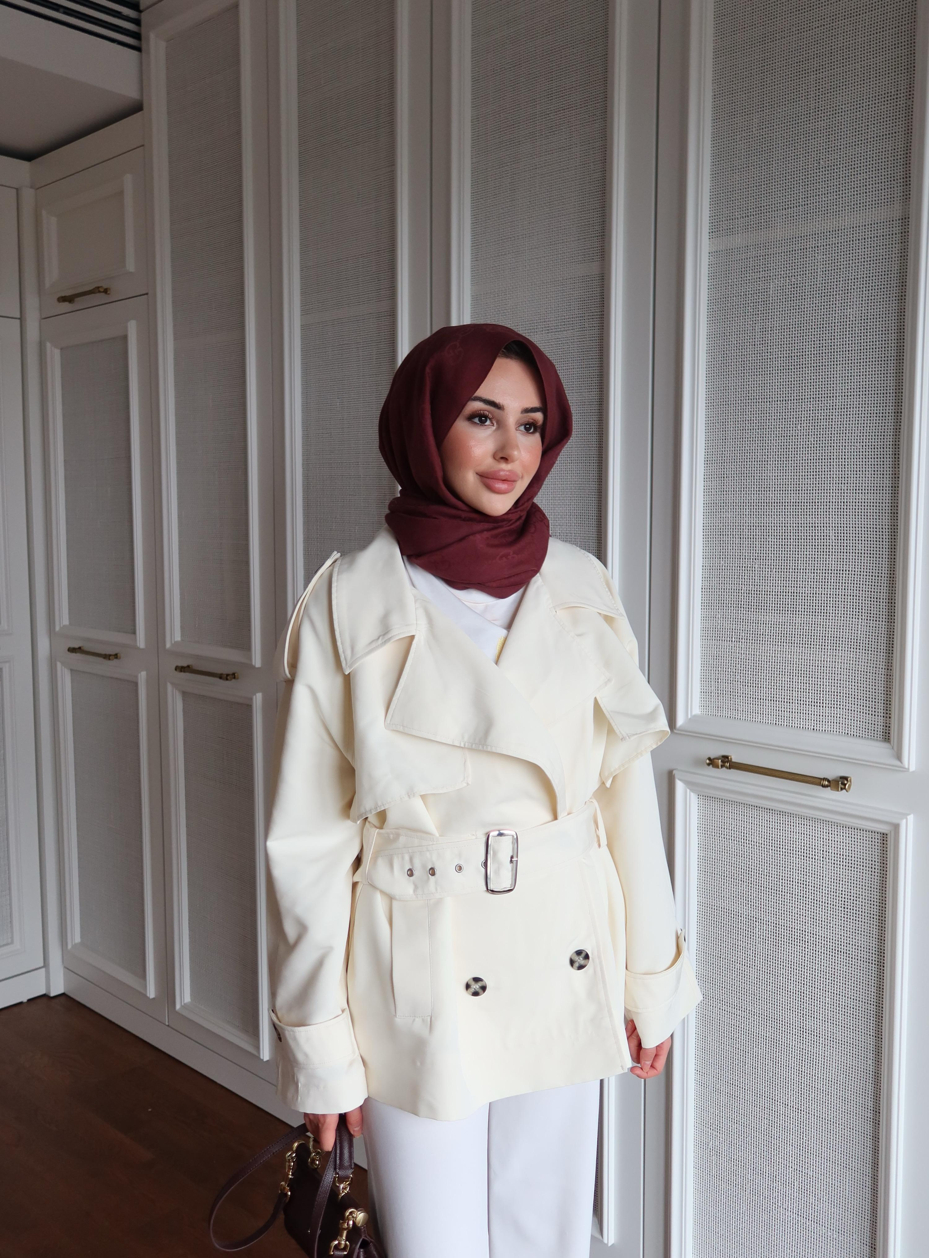 Rüzgarlıklı Oversize Trenç Ekru