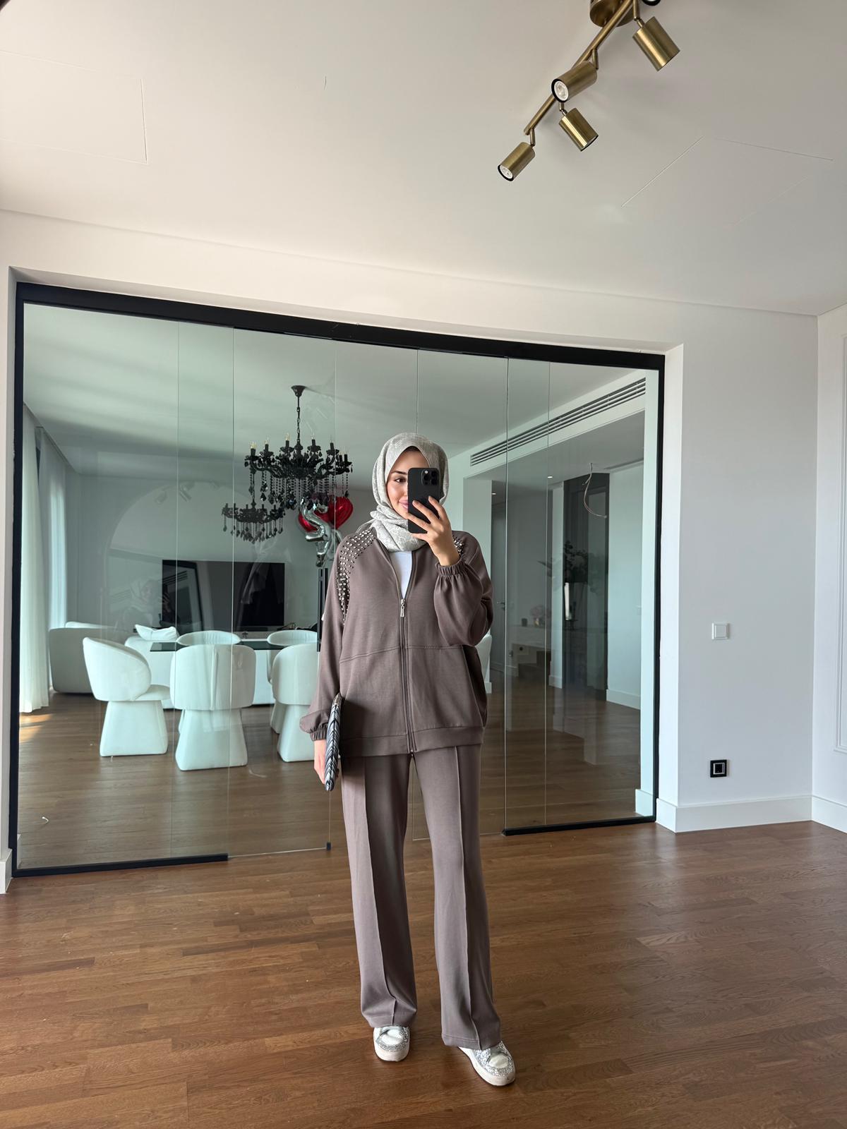 Üst fermuarlıdır. Üst uzunluk 73 cm Eşofman beli lastiklidir